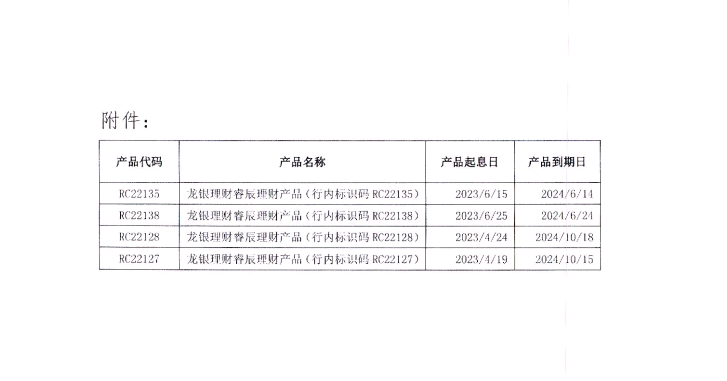 关于下调龙银理财睿辰理财产品(4只)管理费率的公告