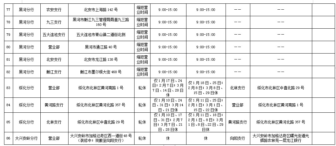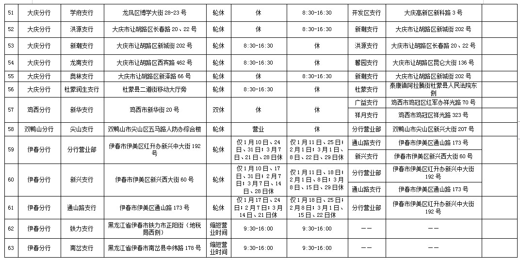 为优化网点服务资源配置,提升运营效率与服务质量,根据国家相关规定及我行实际运营情况,经报备监管部门,我行决定对部分营业网点实行轮休安排,现将具体轮休安排公告如下: