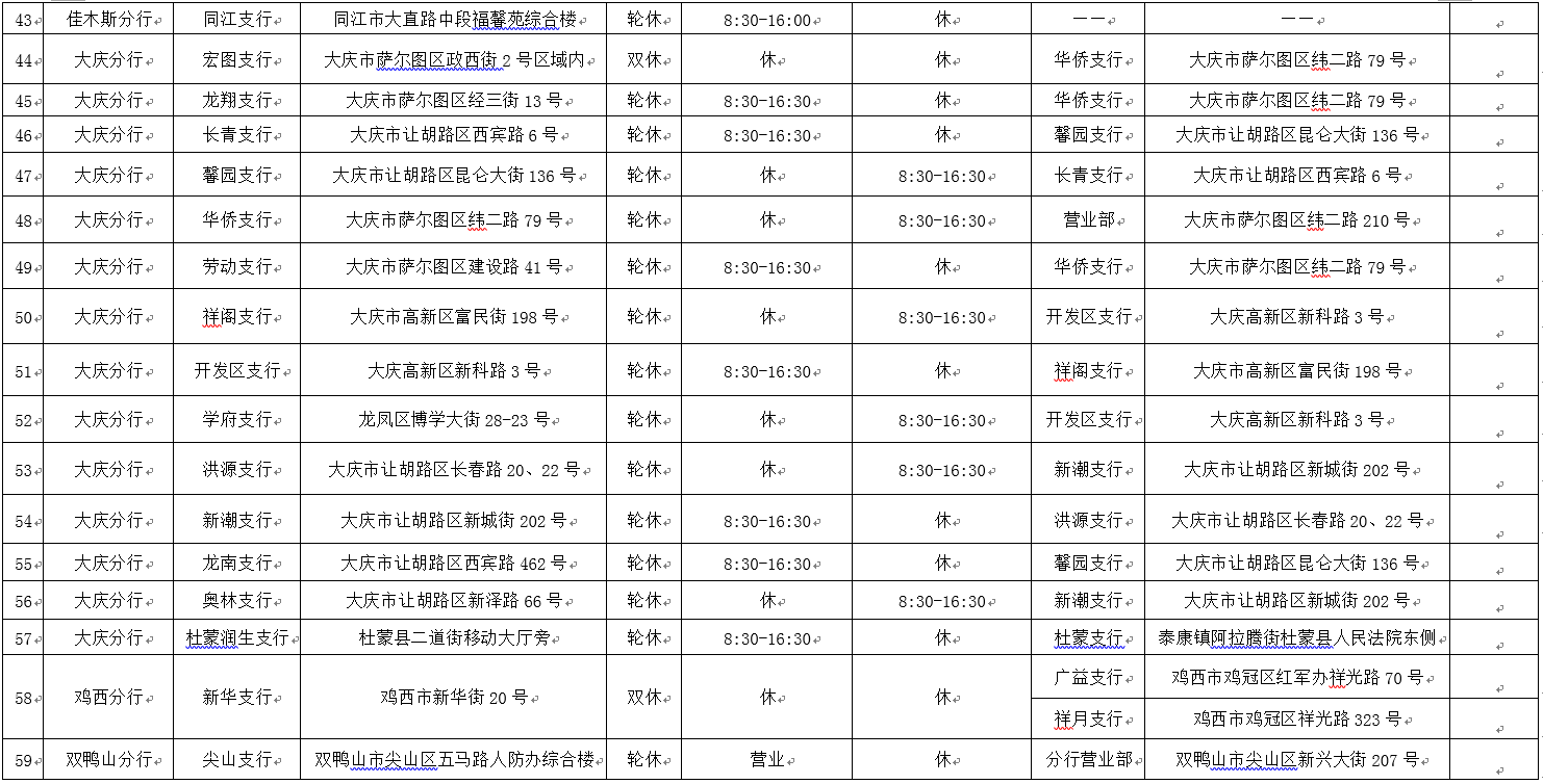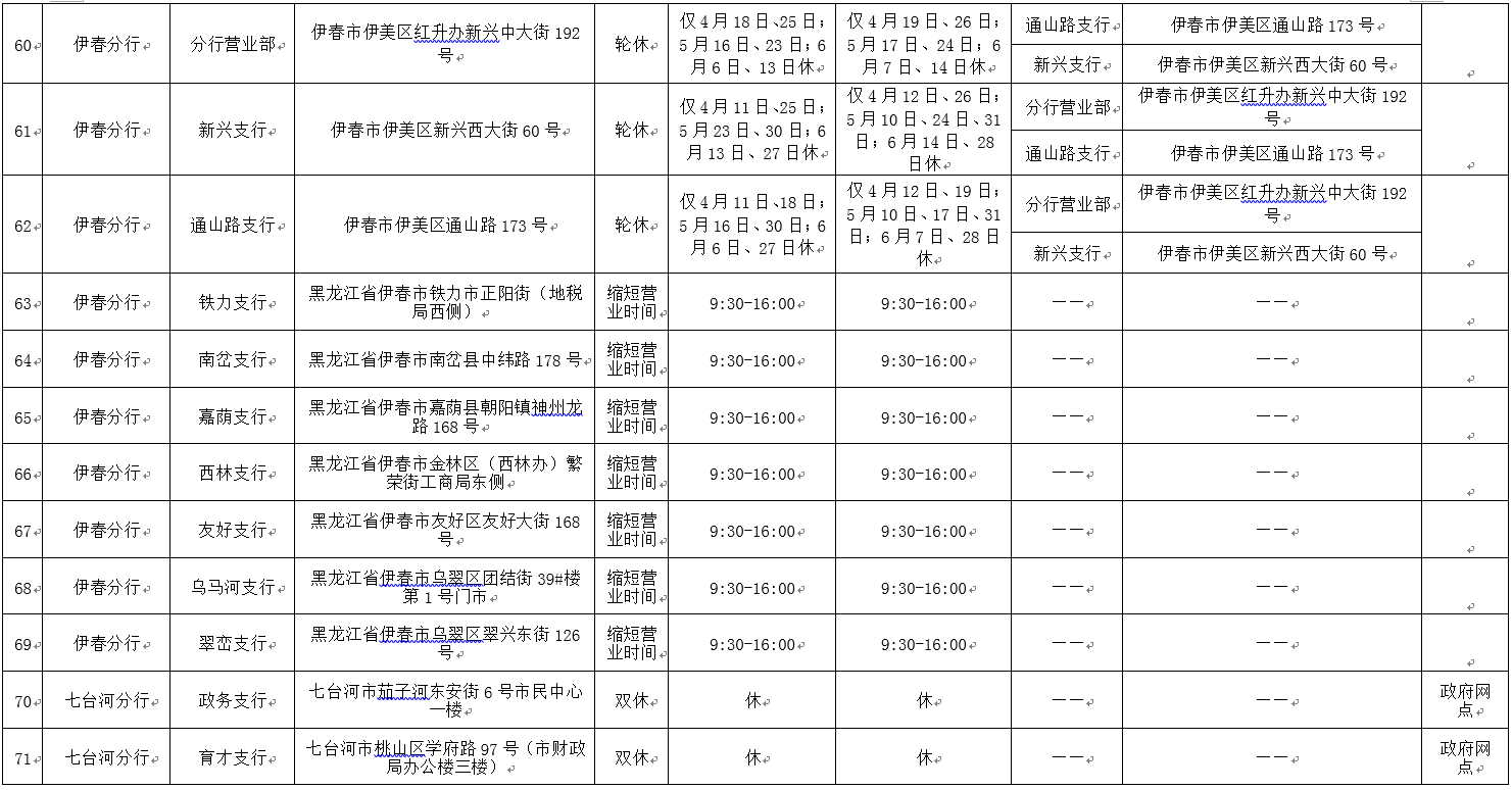 为优化网点服务资源配置,提升运营效率与服务质量,根据国家相关规定及我行实际运营情况,经报备监管部门,我行决定对部分营业网点实行轮休安排,现将具体轮休安排公告如下: