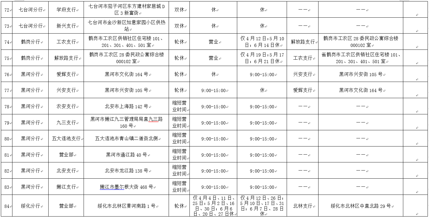 关于龙江银行营业网点周末轮休情况的公告(对外公告版)2026年2季度